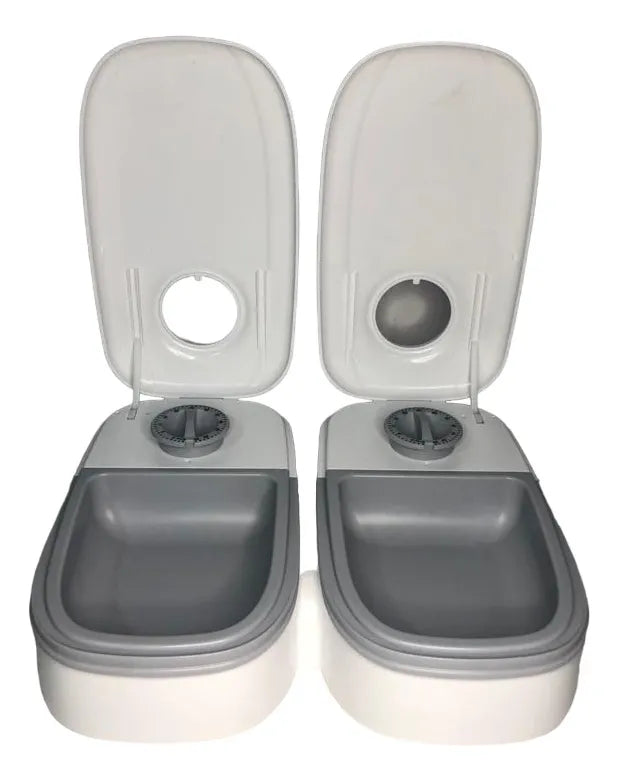Tu mascota siempre tendrá su comida a tiempo, incluso cuando no estás en casa. Este comedero automático cuenta con dos compartimentos individuales y un temporizador mecánico en cada uno, permitiendo programar horas distintas para mantener una alimentación saludable y controlada.